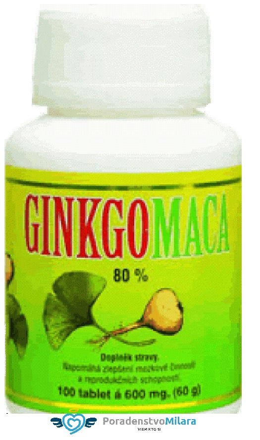 rastlinná látka: Ginkgo biloba 40 g, (240 mg v 1 tablete), Maca peruánska 40 gr(240 mg v 1 tablete). sladidlo: sorbit,pridané látky:mliečny cukor , stearan horečnatý.