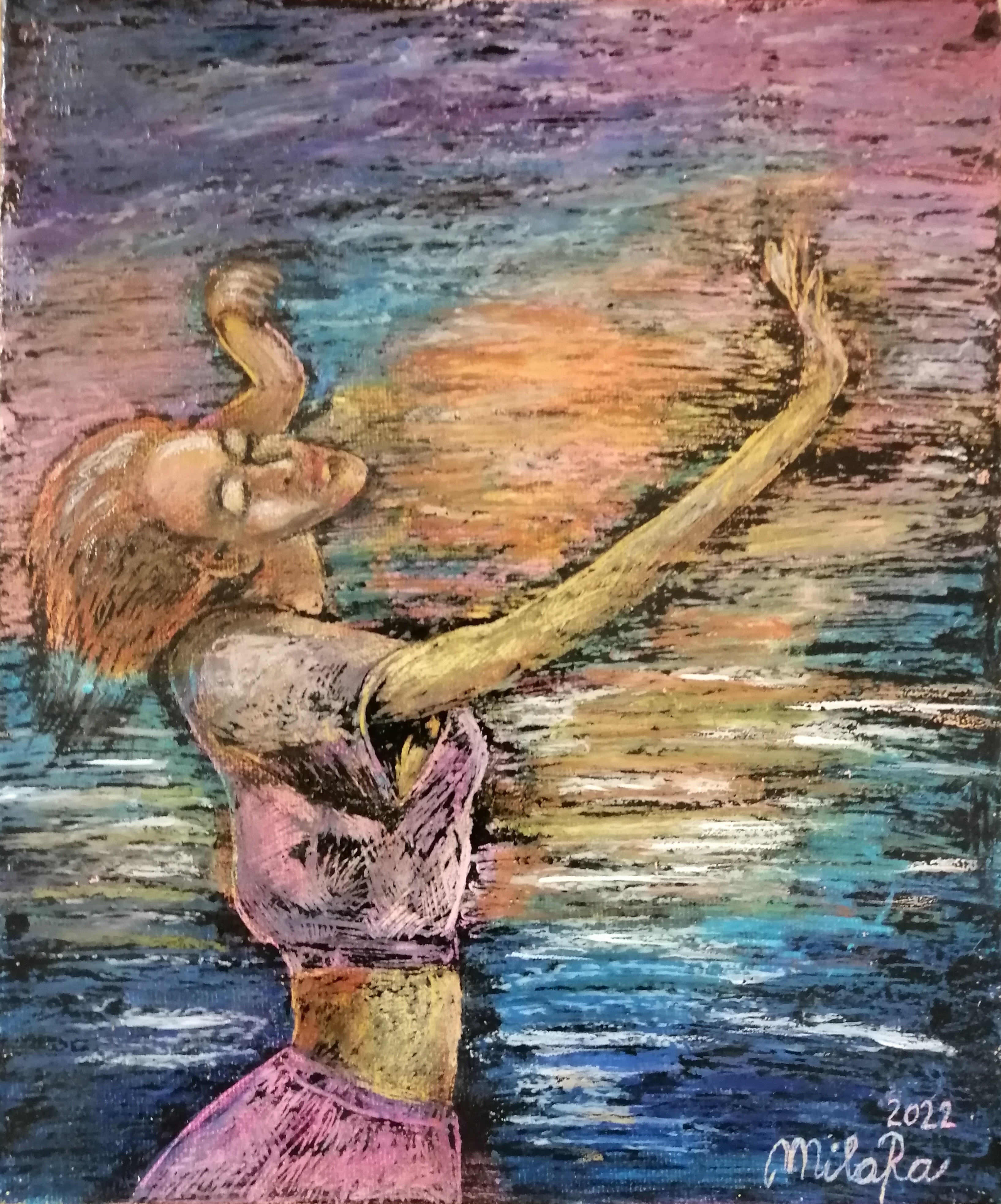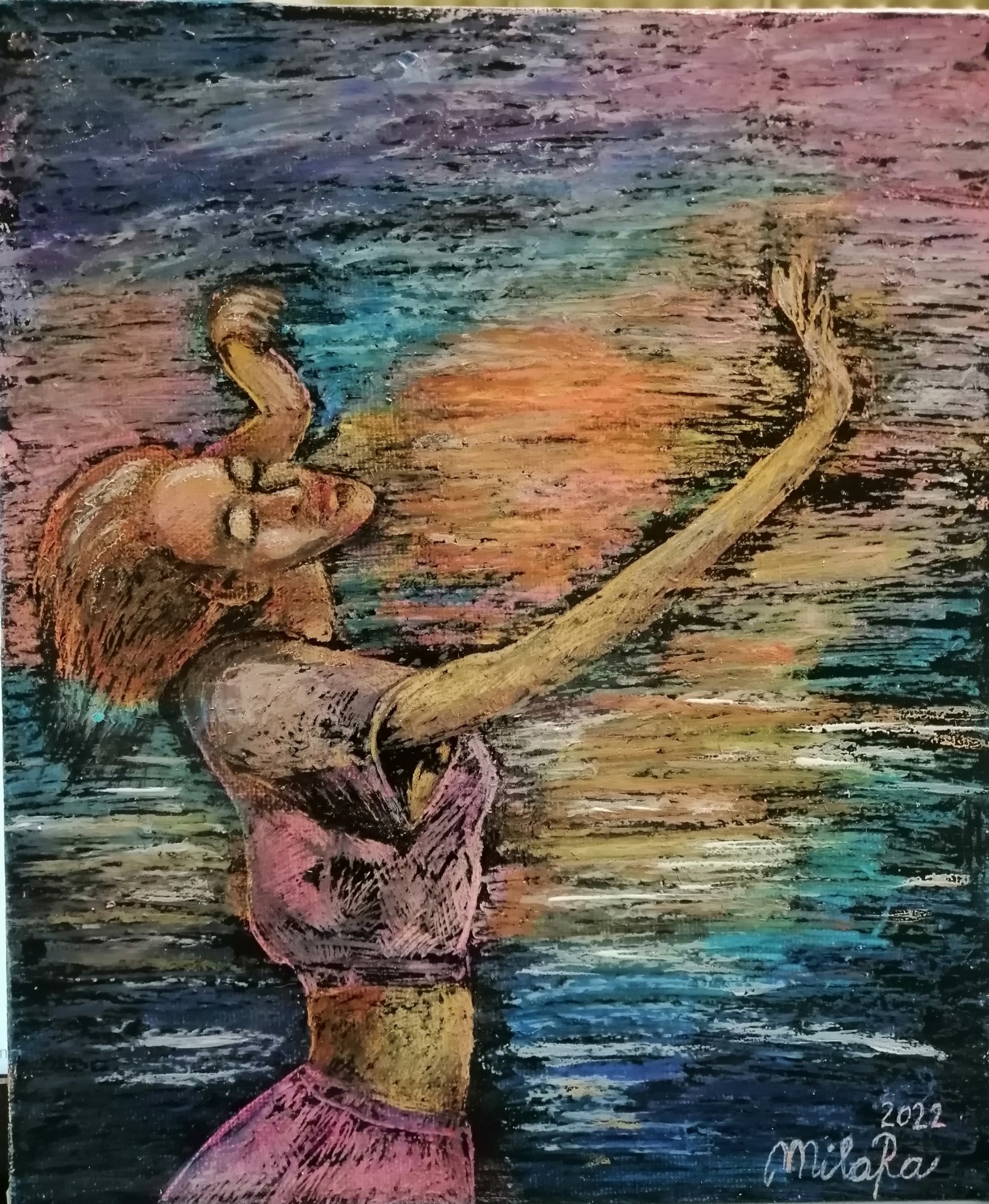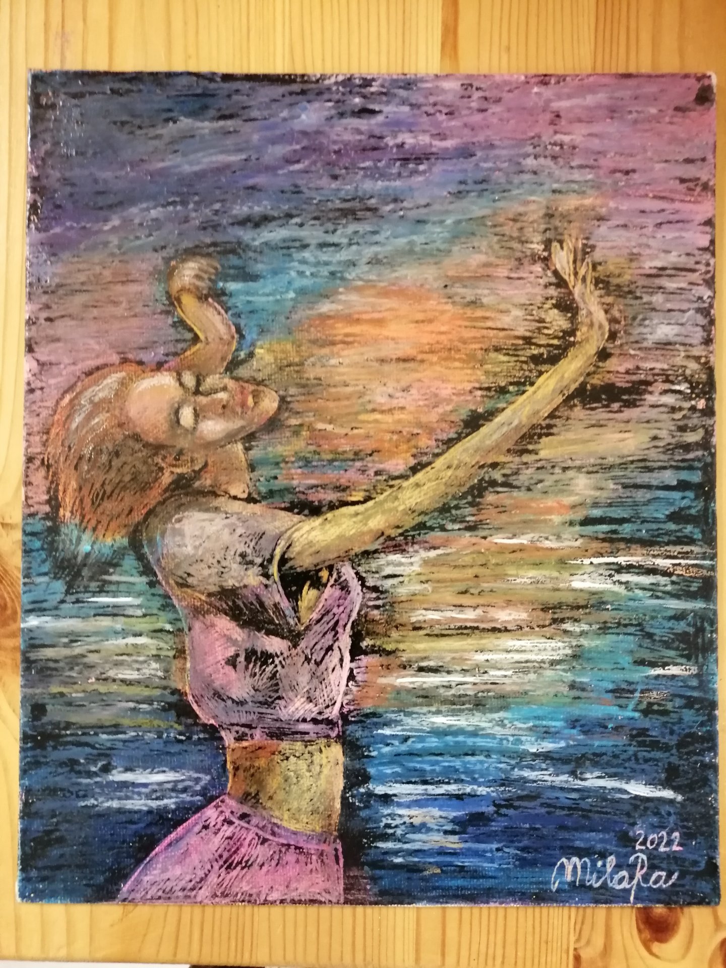 Na plátne na doske maľované kombinovanou technikou : olej pastel, akryl, tuš, lakované a zafixované ... v rozmere 24*20cm